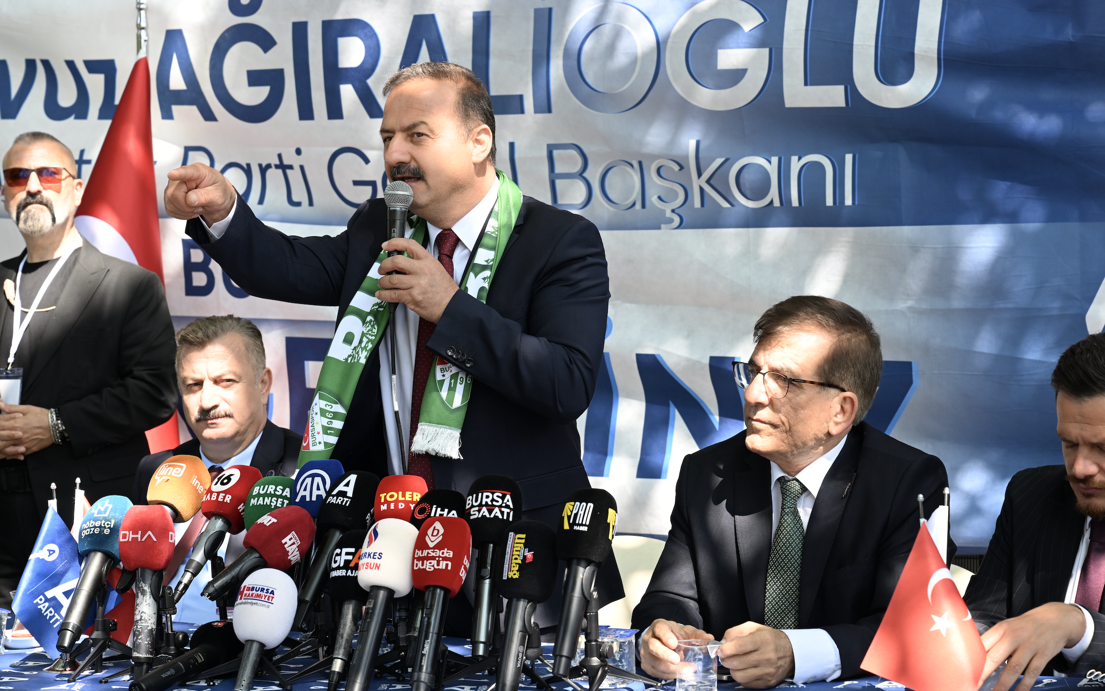 Anahtar Parti Genel Başkanı Yavuz Ağıralioğlu, çeşitli ziyaretlerde bulunmak üzere Bursa’ya geldi. Burada basın toplantısı düzenleyen Ağıralioğlu, gazetecilerin yoğun ilgisiyle karşılandı. Ağıralioğlu’na, Anahtar Parti Türk Dünyası ve Uluslararası İlişkiler Başkanı Sedat Yalçın, Bursa İl Başkanı Fikret Aslan ve diğer partililer eşlik etti. Basın mensuplarının gündeme ilişkin sorularını yanıtlayan Ağıralioğlu, burada yaptığı konuşmada özetle şunları söyledi: